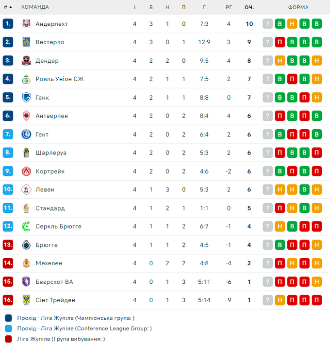 Завершено 4-й тур у Бельгії. 4 вилучення на 7 матчів, що із Сидорчуком?