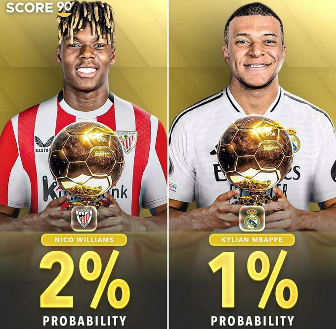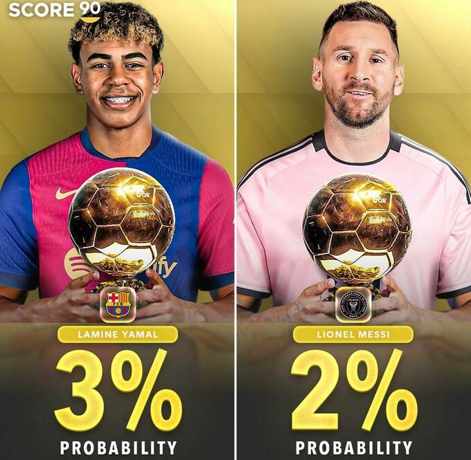 Після Євро-2024 суттєво зменшилися шанси в англійської зірки «Реала» Джуда Беллінгема – 9%. У рейтинг також потрапили Дані Карвахаль з «Реала» (6%), Ламін Ямал (3%) та Ліонель Мессі з «Інтер Маямі» (2%).