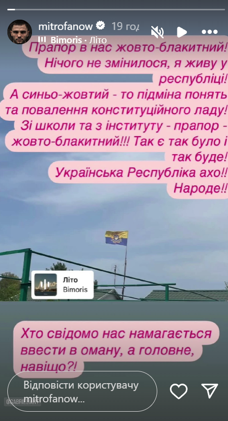 Відомий український боксер у середній вазі Дмитро Митрофанов у Instagram-stories дивно висловився про національний прапор України: