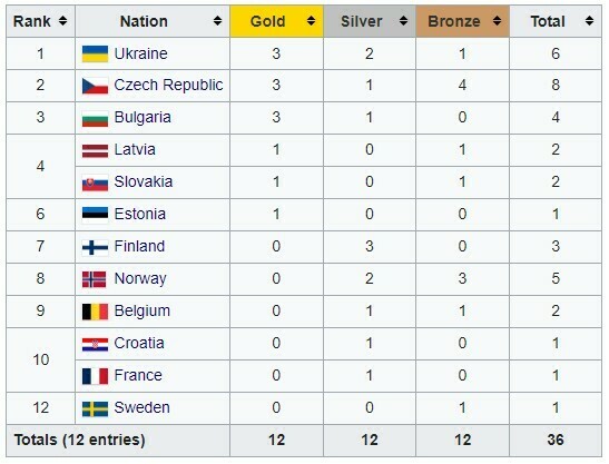 До топ-3 медального заліку також увійшли команди Чехії (3–1–4) та Болгарії (3–1–0).