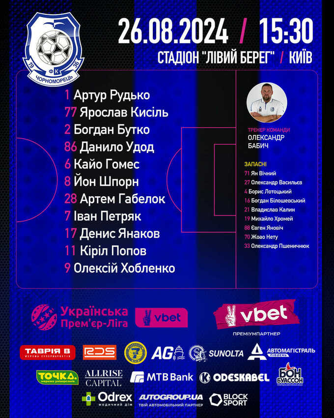 Запасні: Вічний, Лотоцький, Хромей, Яновіч.
