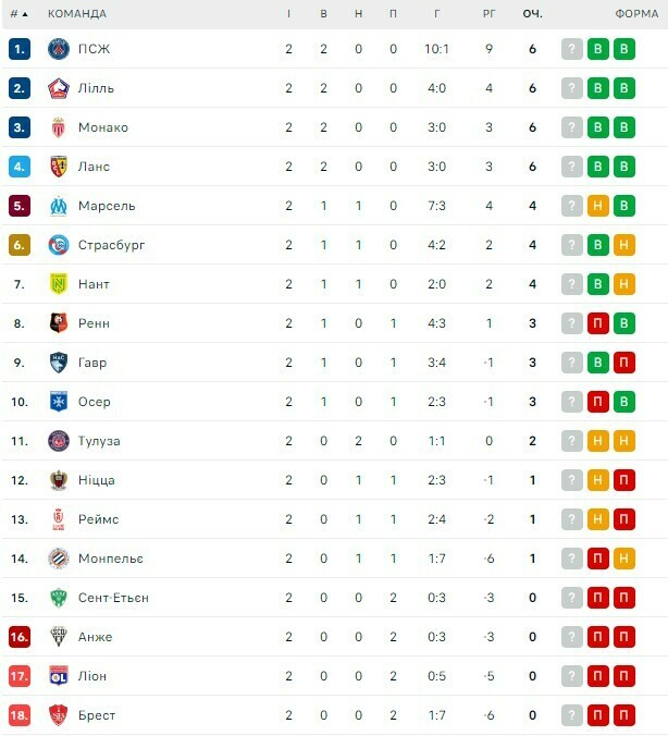 Чотири команди йдуть без втрат: ПСЖ, Лілль, Монако та Ланс набрали 6 очок із 6.