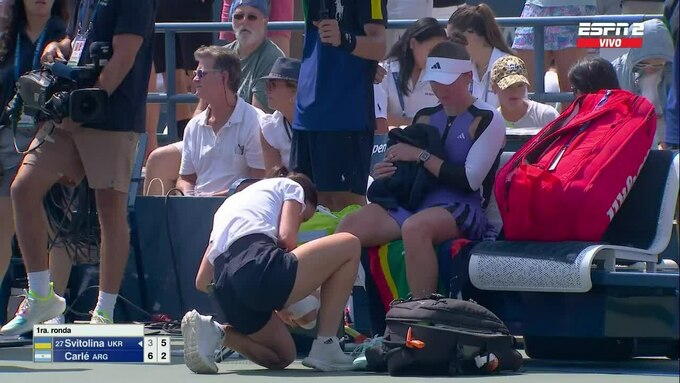 Світоліна тричі брала медичний тайм-аут. Лікар накладав додаткові тейпи на праву ногу українки. Про проблему із правою ногою Еліни відомо вже давно.