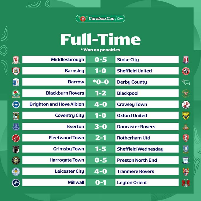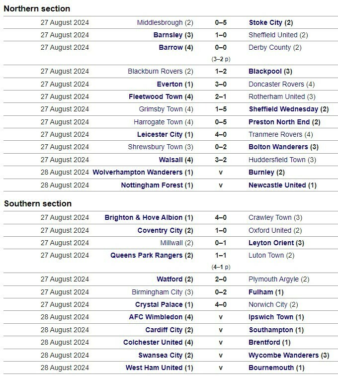 Увечері 27 серпня відбулися поєдинки 1/32 фіналу Кубку англійської ліги.