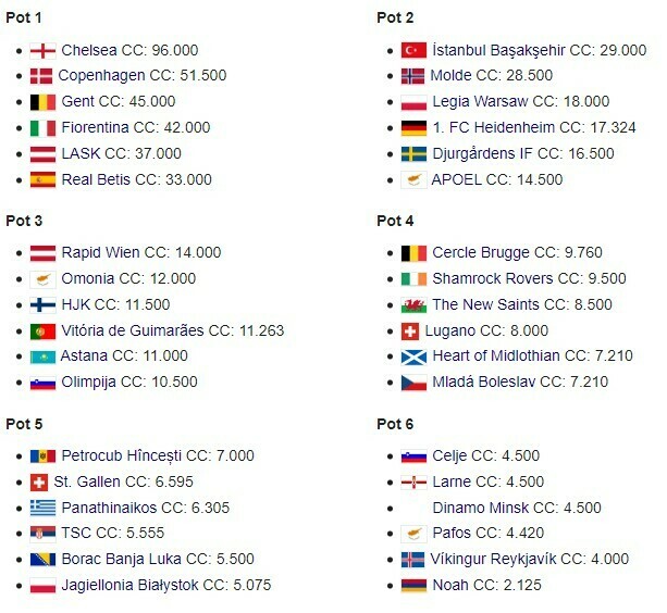 - Кошик 1. Челсі (Англія), Копенгаген (Данія), Гент (Бельгія), Фіорентина (Італія), ЛАСК (Австрія), Бетіс (Іспанія)