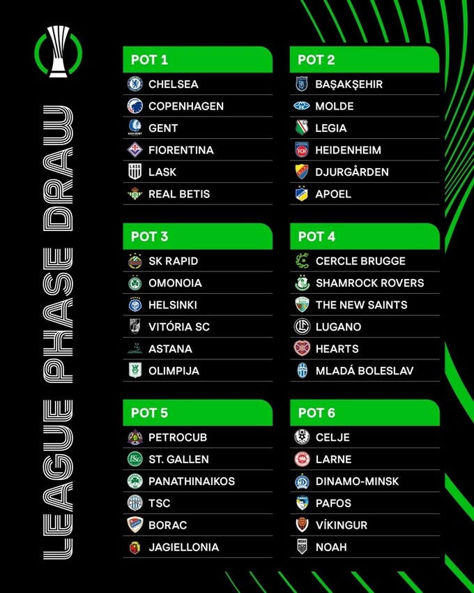 Стали відомі усі 36 клубів, які візьмуть участь в осінній стадії Ліги конференцій.