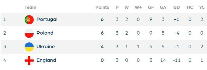 У заключному періоді голів не було, й українки здобули перемогу з рахунком 4:1. Після перемоги збірної Португалії над Польщею (3:1) виявилося, що українська команда посіла третє місце в групі А.