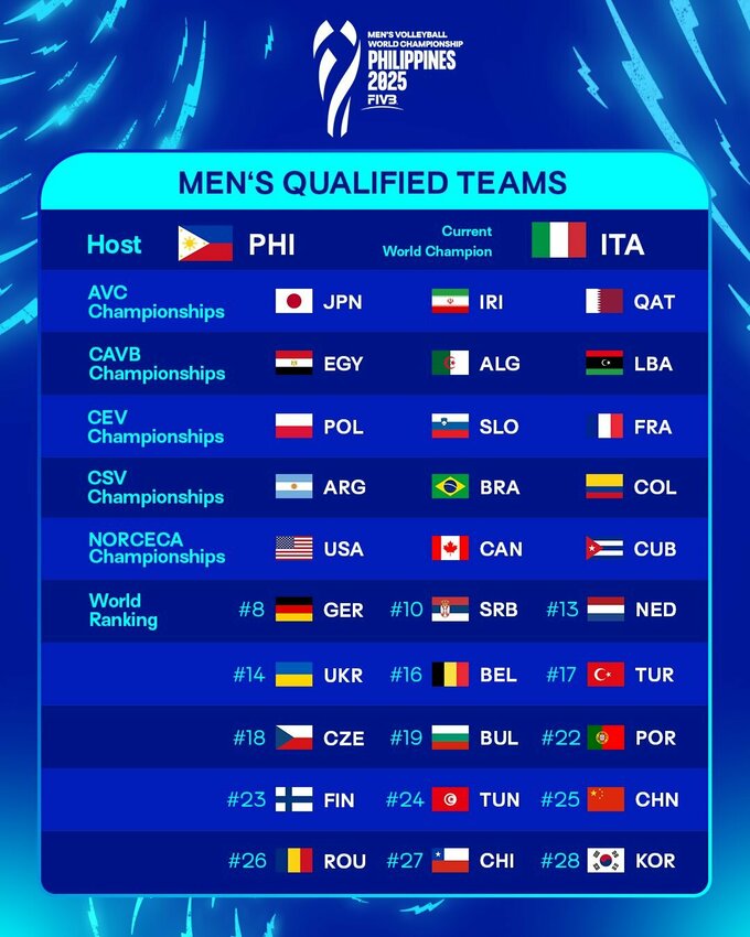 Міжнародна федерація волейболу (ФІВБ) ухвалила рішення, що у фінальних турнірах чемпіонатів світу з волейболу 2025 року як у чоловіків, так і у жінок візьмуть участь по 32 збірні. Команди будуть розділені на 8 груп (по чотири в кожній) і по дві найкращі вийдуть до 1/8 фіналу.