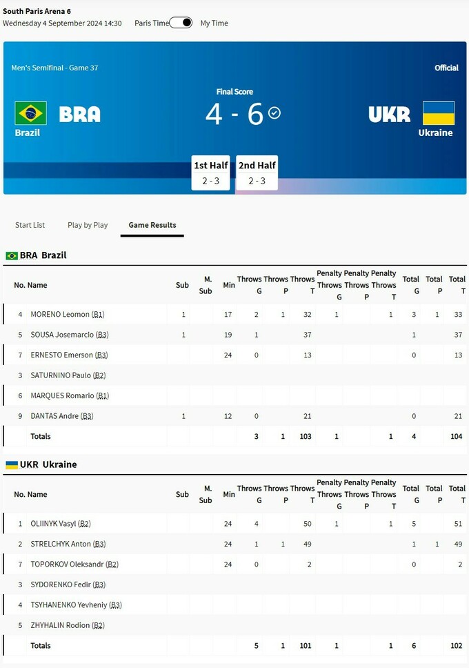 Бразильці виступають у Франції в статусі чинних чемпіонів й досі не поступалися на Паралімпіаді-2024 – лише один поєдинок звели до нічиєї (в груповому раунді з Іраном – 7:7).