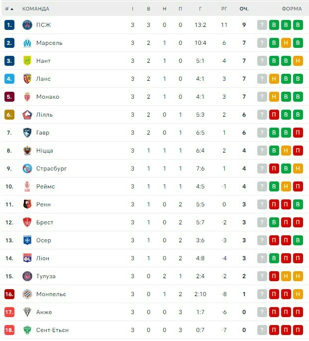 Після трьох турів лідирує ПСЖ із стовідсотковим результатом.