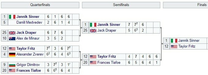 У фіналі Тейлор Фрітц зіграє з італійцем Янніком Сіннером.
