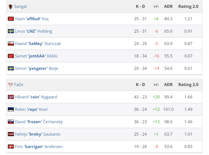 Другою картою став вибір FaZe – Dust 2. На цій карті Sangal не змогли чинити серйозного опору і програли з рахунком 5:13.
