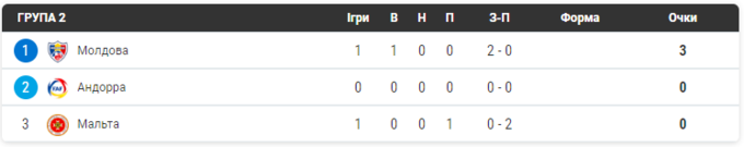 Молдова переграла Мальту та очолила турнірну таблицю групи