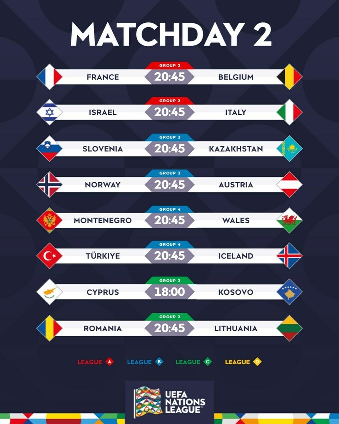 Увечері 9 вересня відбуваються поєдинки 2-го туру Ліги націй.