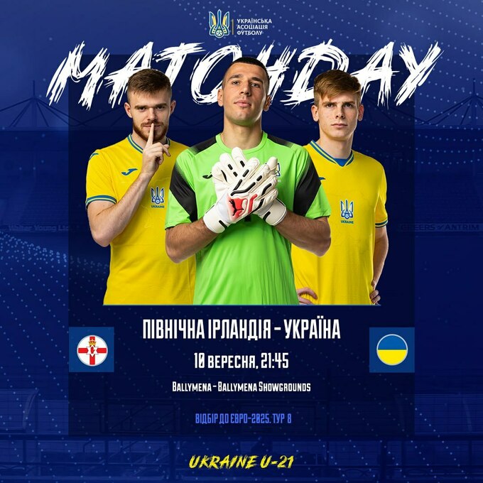 10 вересня о 21:45 відбудеться матч кваліфікації Євро-2025 U-21 між командами Північної Ірландії U-21 та України U-21.