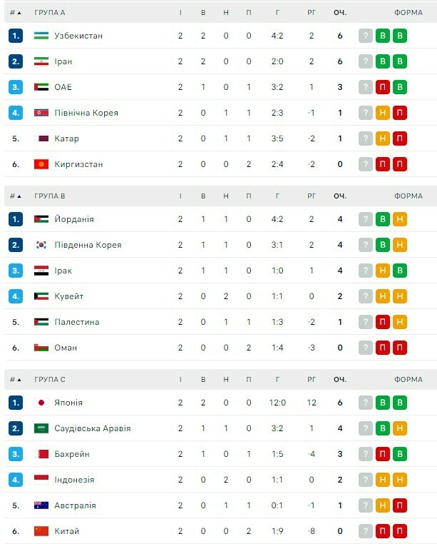 Хто лідирує у відборі ЧС в Азії? Турнірні таблиці. П'ять м'ячів від Японії