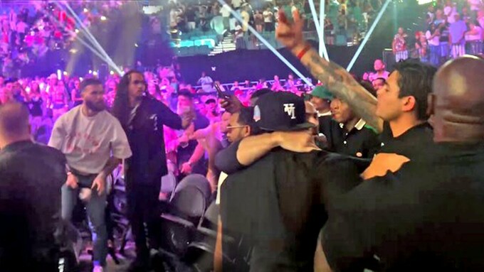 Цього разу він спробував вдарити Джермалла Чарло – і тут вже пройшло. Американець отримав швидкого ляпаса, а віддати борг не встиг. Між бійцями вже був натовп і, виходить, Джермалл пішов з цього конфлікту, програючи 1:0.