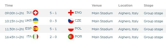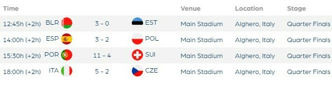 До 1/2 фіналу жіночого турніру зіграють: Італія – Польща, Іспанія – Португалія. За 5-8 місця зустрінуться: Чехія – Англія, Швейцарія – Україна.