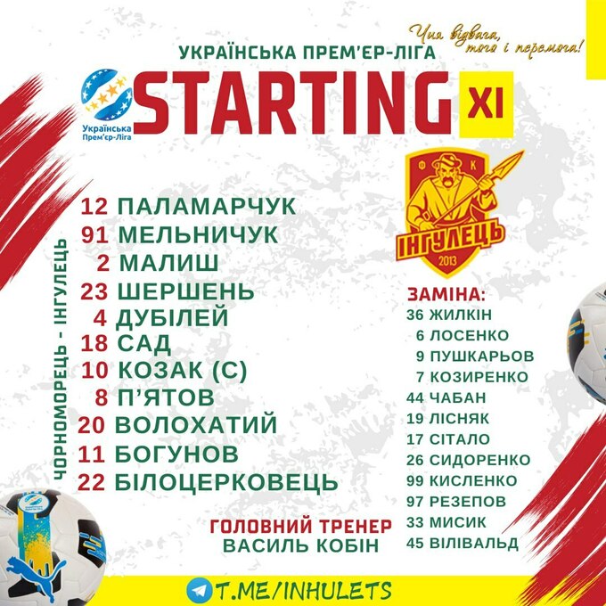 Запасні: Жилкін, Сидоренко, Вілівальд, Лосенко, Чабан, Козиренко, Пушкарьов.