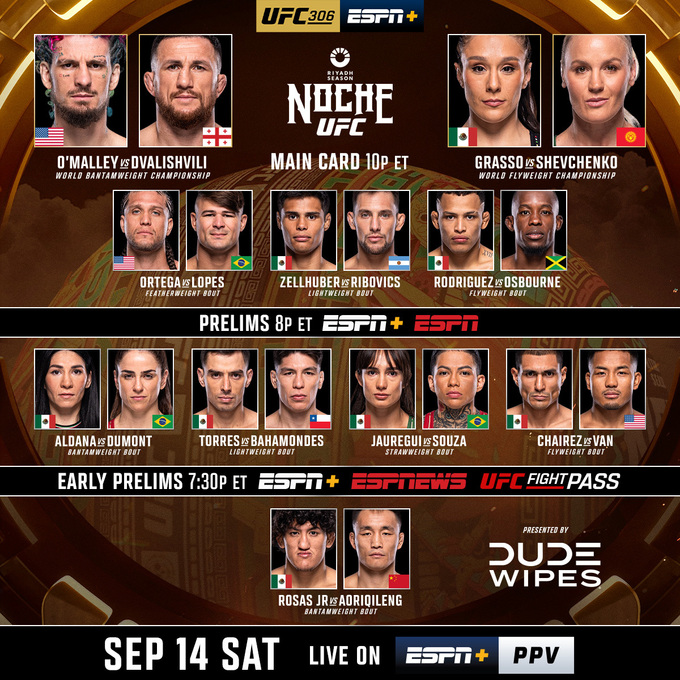 Головний бій: Шон О'Меллі (США, 18–1) – Мераб Двалішвілі (Грузія, 17–4), за пояс чемпіона у бантамвейті.