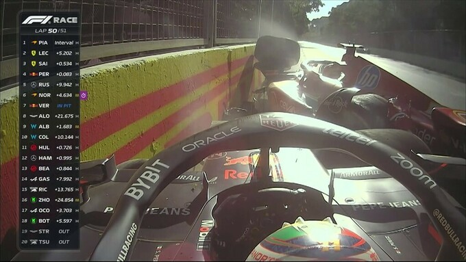 На останніх 20 колах гонщик Феррарі перебував на дистанції менше однієї секунди, але Оскар витримав неймовірний пресинг та здобув другу перемогу у кар'єрі Ф-1. А ось Леклер знову не виграв в Азербайджані, хоча вчетверте стартував з поулу.