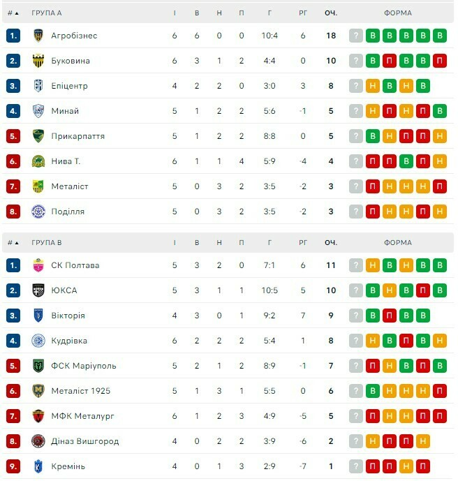 Турнірна таблиця