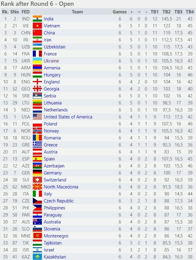 Пари 7-го туру в чоловічому турнірі: Індія – Китай, Іран – В'єтнам, Узбекистан – Україна, Вірменія – Англія.