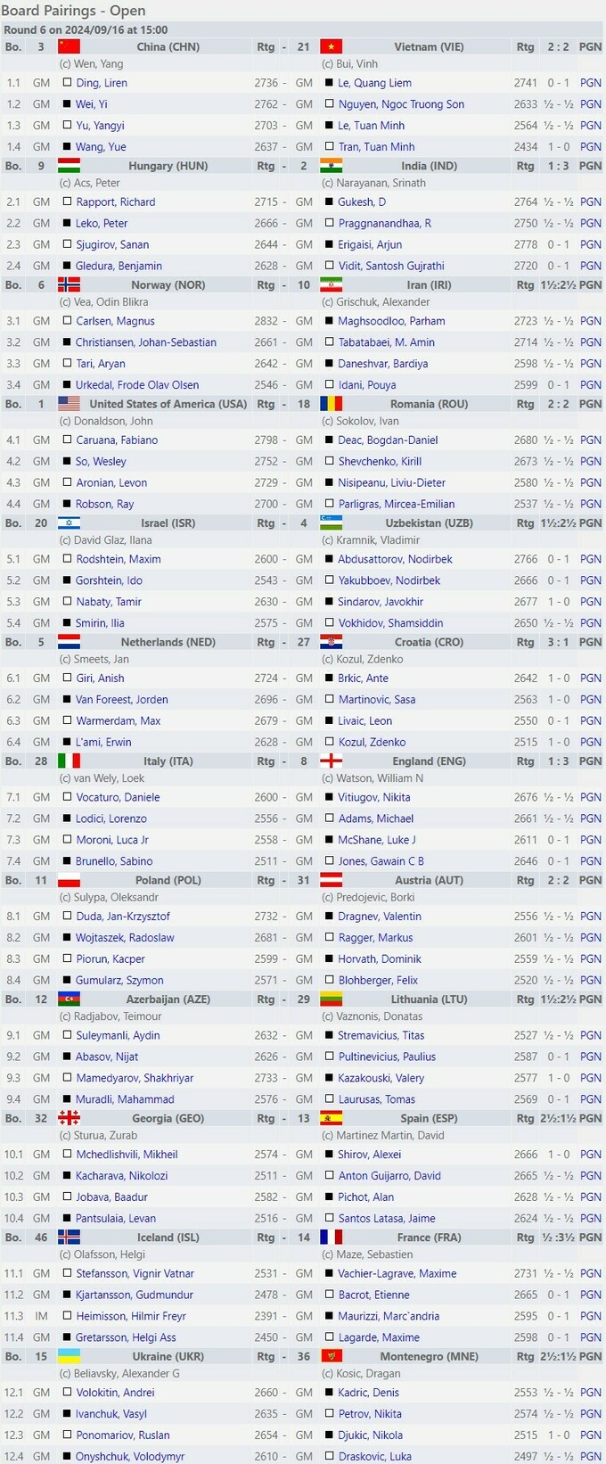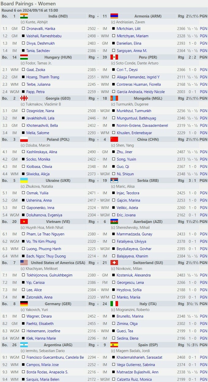 16 вересня в угорському Будапешті відбулися матчі 6-го туру шахової Олімпіади 2024.