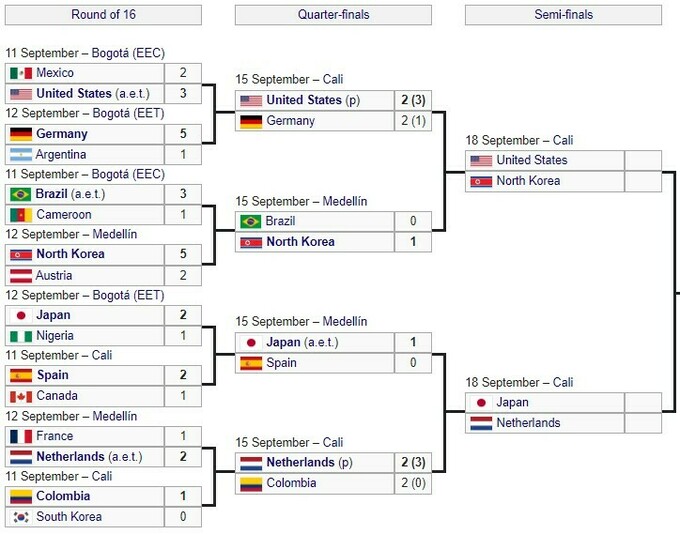 У 1/2 фіналу зіграють: США – Північна Корея, Японія – Нідерланди