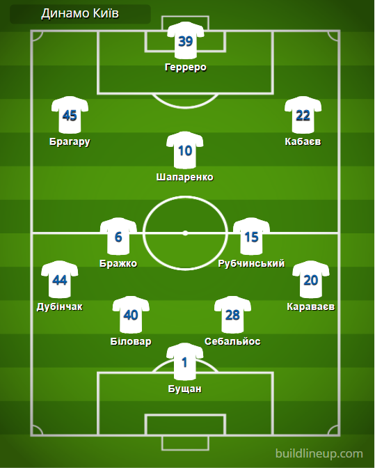 «Динамо» Київ: Бущан – Дубінчак, Біловар, Себальйос (Михавко, 66), Караваєв – Бражко (Андрієвський, 59), Шапаренко (Буяльський, 81), Рубчинський (Піхальонок, 69) – Брагару (Вівчаренко, 68), Герреро (Ванат, 75), Кабаєв (Ярмоленко, 75).