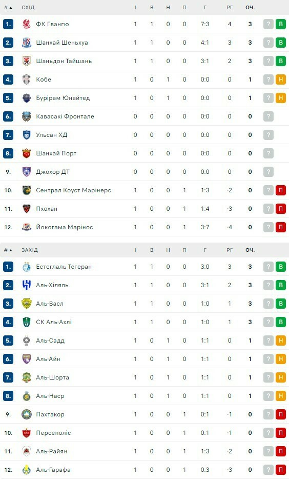 Увечері 17 вересня відбулися матчі 1-го туру Ліги чемпіонів Азії.