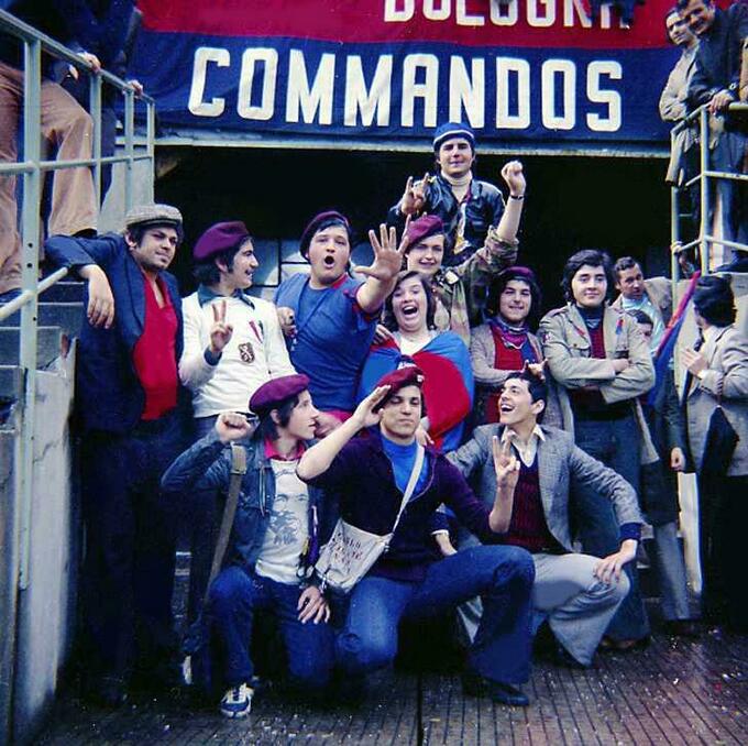 Та годі про офіціоз. Десь від 1972 р. найпалкіші прихильники «Болоньї» стали утворювати ультрас-групи. Першими були зокрема Bologna Commandos і Brigate Rossoblu. А у вересні 1974 р. – якраз пів сторіччя тому – ці групи об’єдналися під назвою Forever Ultras. Інколи їх ще називають Ultras Rossoblu’74 (до речі, 12 жовтня цього року пройде відповідна ювілейна вечірка). Висунувся й новий лідер – Роберто Мелотті на прізвисько Бімбо. Чому саме так? Річ у тім, що Роберто був до вподоби герой популярного в 1970-ті фільму «Мене звуть Трініті» (до речі, пізньорадянський фільм «Людина з бульвару Капуцинів» позичив у цій пародії на вестерни сцени бійок у салуні). Героя Бада Спенсера (справжнє ім’я цього популярного актора й багаторазового чемпіона Італії з плавання, а згодом діяча політичної партії «Вперед, Італія!» – Карло Вісенте Педерсолі) називали саме Бімбо або Бімбіно. Як писала свого часу впливова la Repubblica, «це були 70-ті, політика гралася на вулицях і, наскільки це можливо, залишалася поза межами волі самих ультрас». Forever Ultras мали своєрідну уніформу: берети на кшталт чегеварівського. Поза межами волі?.. Все ж таки більшість болонських ультрас сповідували ліві ідеї, хоча це й не було категоричним правилом у цьому середовищі. Тим паче, що саме о цій порі почалася активна фаза створення нових угруповань.