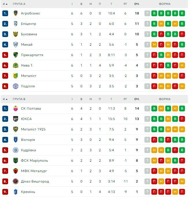 Турнірна таблиця