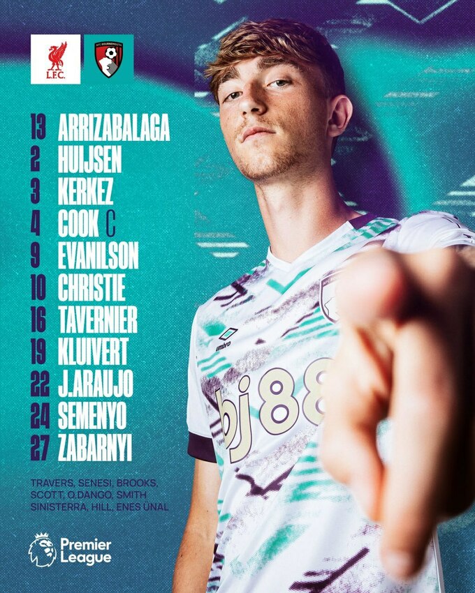 «Борнмут»: Кепа, Гейсен, Керкез, Забарний, Араухо, Кук, Крісті, Таверньє, Клюйвер, Семеньо, Еванілсон