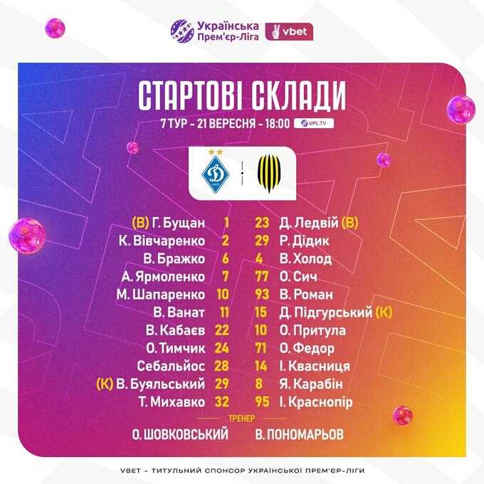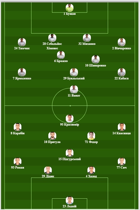 «Динамо»: Бущан, Вівчаренко, Михавко, Себальос, Тимчик, Бражко, Шапаренко, Буяльський, Кабаєв, Ярмоленко, Ванат