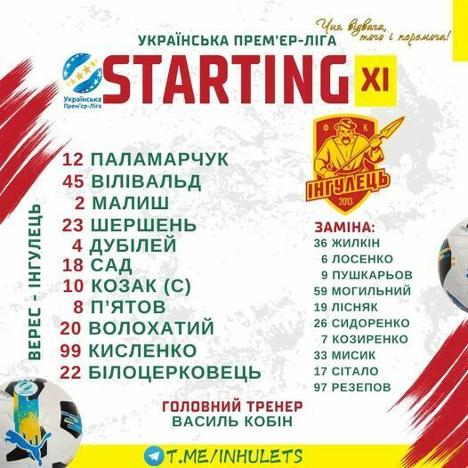 «Інгулець»: Паламарчук – Малиш, Вілівальд, Шершень, Дубілей (Козиренко, 78) – Козак (Сидоренко, 89), Волохатий, П’ятов, Білоцерковець (Мисик, 89) – Сад (Пушкарьов, 78), Кисленко (Сітало, 67).