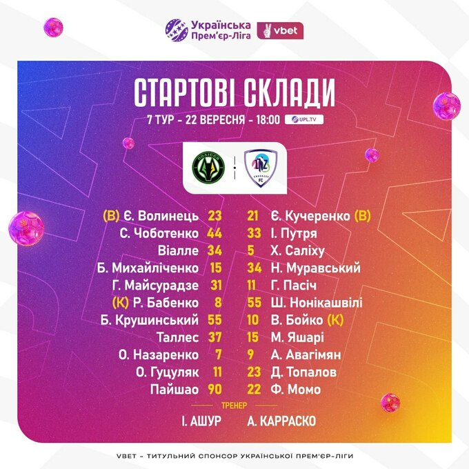 Оприлюднено стартові склади на матч 7-го туру УПЛ Полісся – ЛНЗ Черкаси