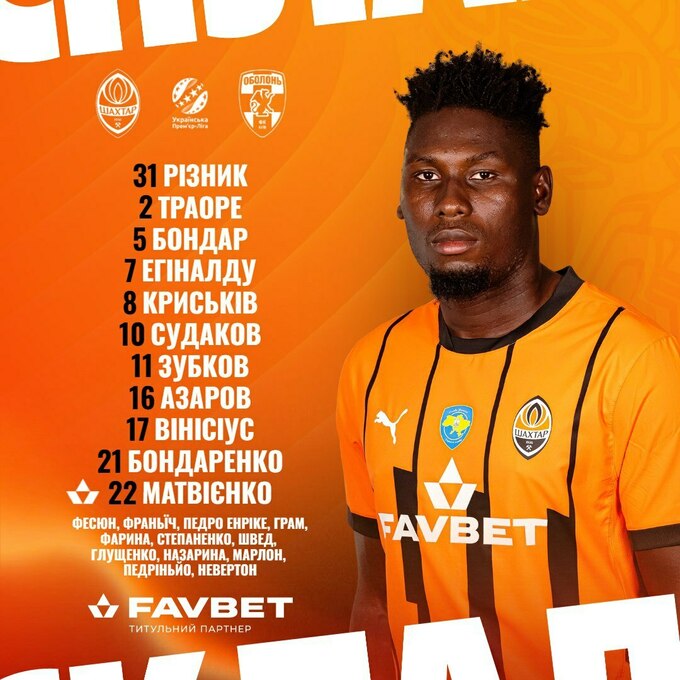 «Шахтар»: Різник – Азарові, Матвієнко, Бондар, Вінісіус (Грам, 79) – Судаков (Глущенко, 85), Криськів (Степаненко, 71), Бондаренко – Егіналду (Невертон, 71), Траоре, Зубков (Педріньйо да Сілва, 71).