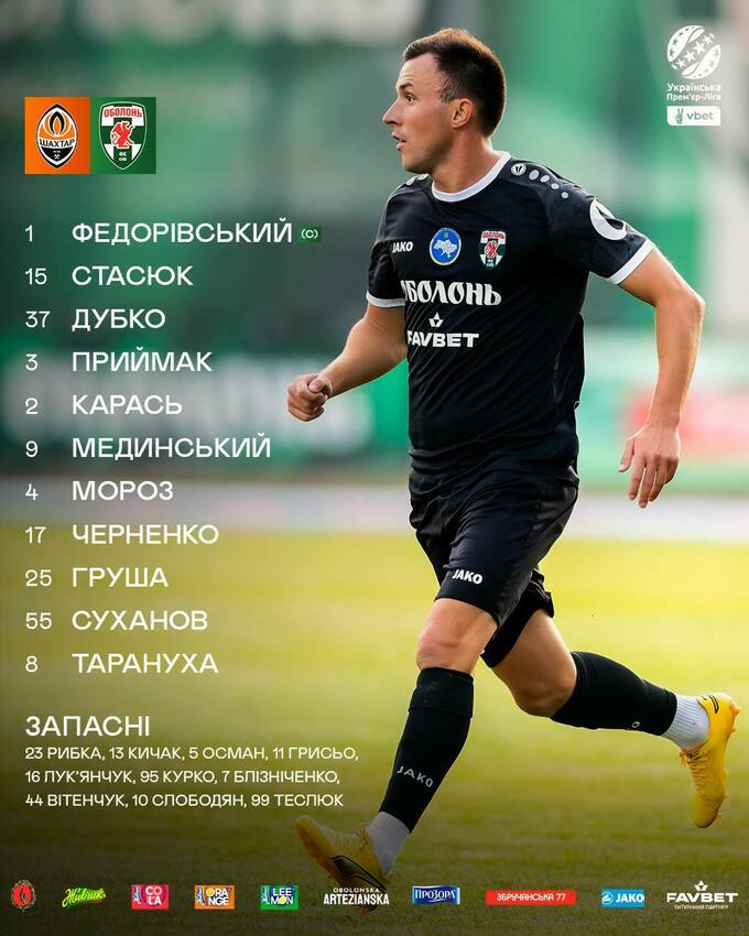 Запасні: Рибка, Кичак, Осман, Грисьо, Лук’янчук.