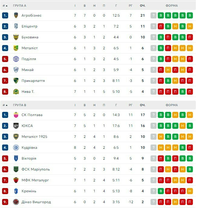 Турнірна таблиця