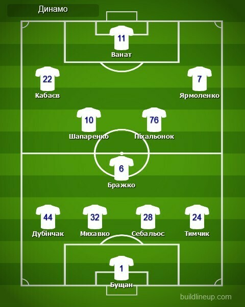 «Динамо»: Бущан, Дубінчак, Михавко, Себальос (Біловар, 19), Тимчик, Шапаренко (Рубчинський, 64), Бражко, Піхальонок (Андрієвський, 84), Кабаєв (Герреро, 84), Ванат, Ярмоленко (Брагару, 64)