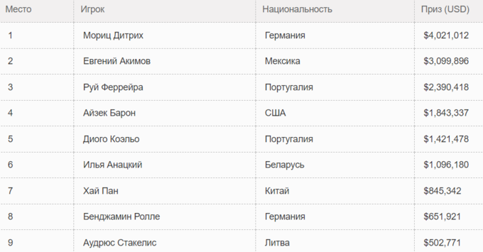 Переможцем став Моріц Дітріх, який здобув престижний браслет