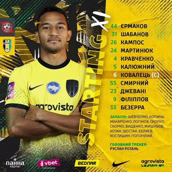 Запасні: Маханьков, Хома, Понєдєльнік, Конате, Вакулко, Каплунов, Шевченко.