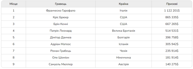 Результати фінального столу турніру WSOP Online 2024 25 000$ GGMillion$ Super High Roller Championship: