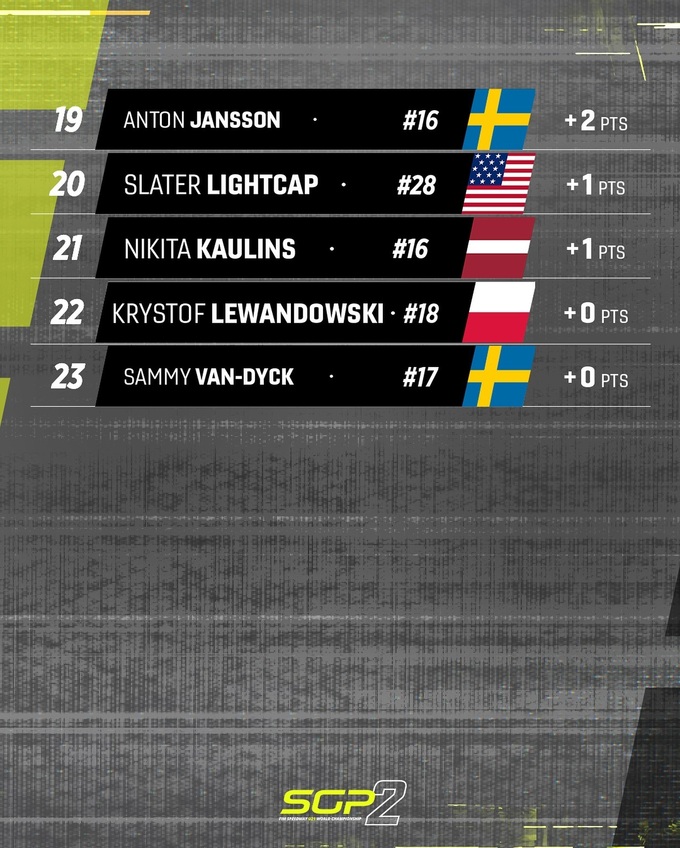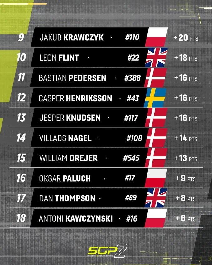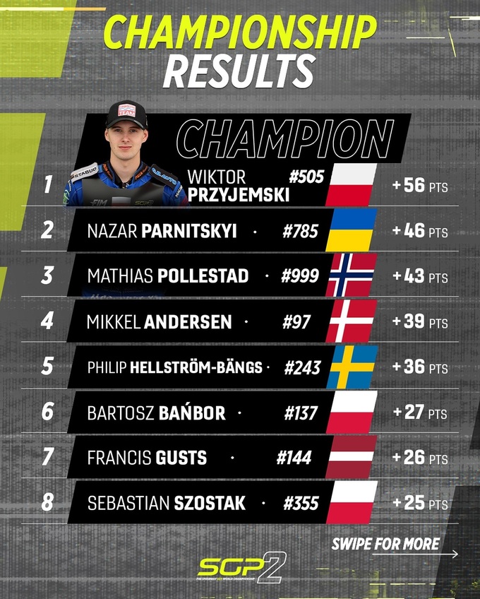 Юніорський чемпіонат світу зі спідвею SGP2 2024, підсумковий залік