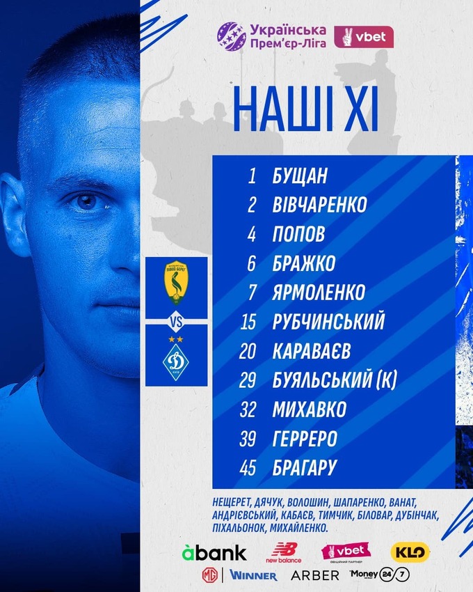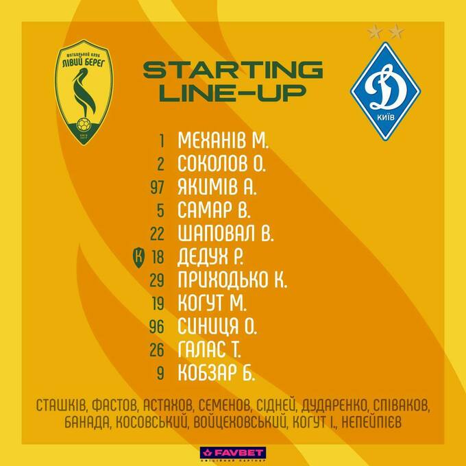 Запасні: Нещерет, Шапаренко, Ванат, Андрієвський, Тимчик, Дубінчак, Піхальонок.