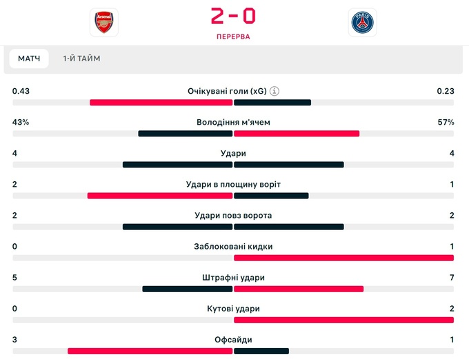 Арсенал – ПСЖ – 2:0. Текстова трансляція матчу
