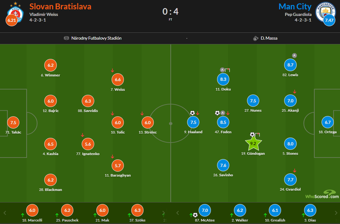 Оцінки WhoScored за матч Слован – Манчестер Сіті (0:4)