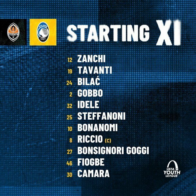 «Аталанта» U-19: Дзанкі – Гоббо, Білач, Таванті – Бонсіньйорі Годжі (Сімонетто, 90), Річчіо (Менкаралья, 80), Бонаномі, Стеффаноні, Іделе (Гецці, 73) – Камара (Бальдо, 72), Фіогбе (Мік’єлетто, 90).