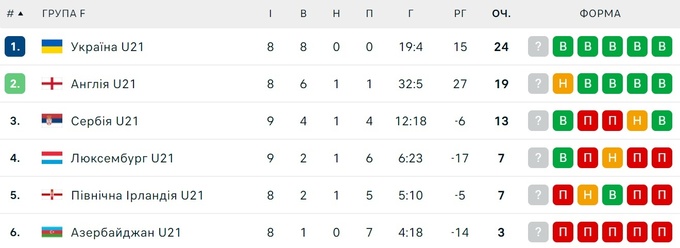 «Синьо-жовті» мають в активі вісім перемог у восьми матчах, одноосібно лідирують у групі відбору і достроково завоювали путівку до фінального турніру Євро-2025 (U-21).
